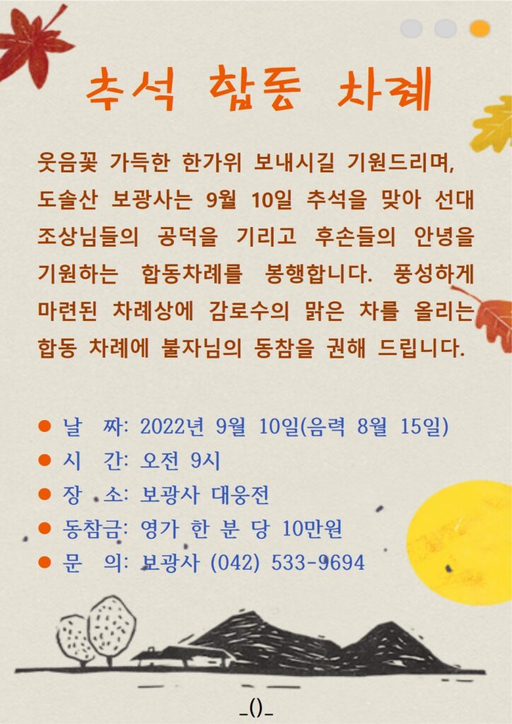 * 햅쌀, 떡, 과일 공양 부탁드립니다.